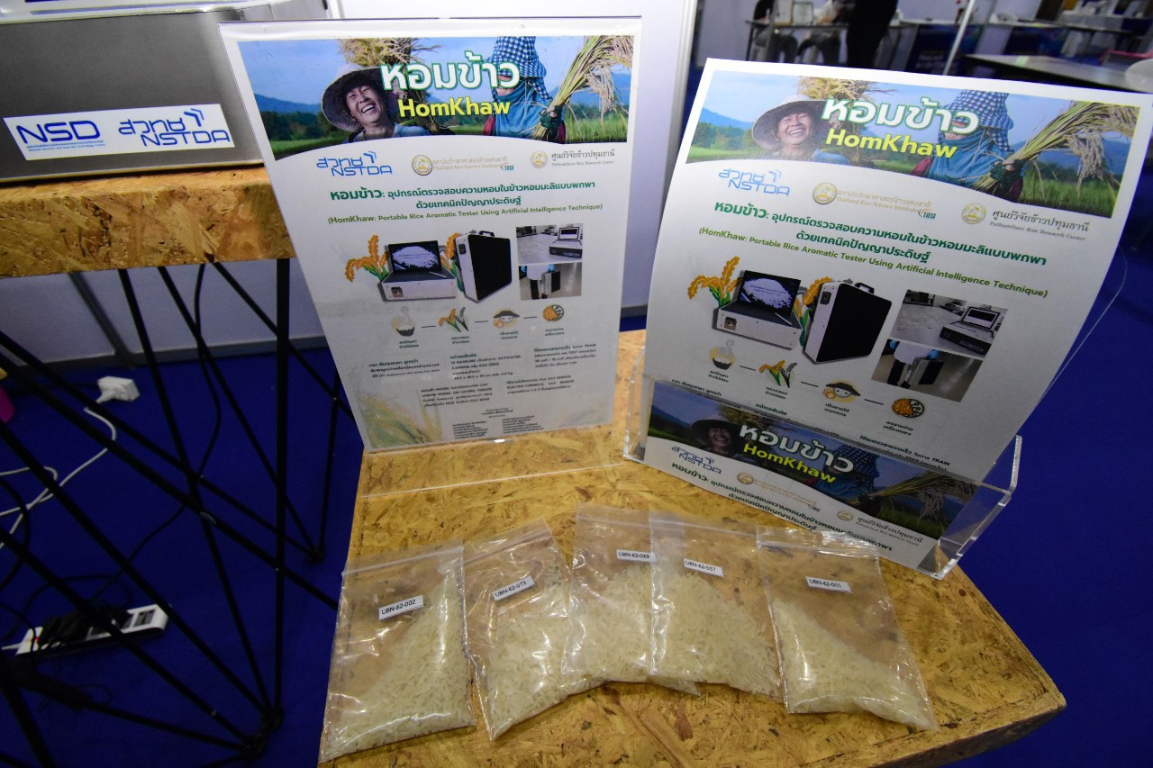 จากผลงานประดิษฐ์คิดค้น เรื่อง “หอมข้าว : อุปกรณ์ตรวจสอบความหอมในข้าวหอมมะลิ แบบพกพาด้วยเทคนิคปัญญาประดิษฐ์” กล่าวว่า นวัตกรรมหอมข้าว : อุปกรณ์ตรวจสอบความหอมในข้าวหอมมะลิแบบพกพาด้วยเทคนิคปัญญาประดิษฐ์พัฒนาขึ้นเพื่อใช้สำหรับตรวจหาค่า 2AP ตรวจวัดและวิเคราะห์ผลได้รวดเร็วด้วย AI ลดความผิดพลาดจากการวิเคราะห์ผล และสามารถถ่ายทอดตัวอย่างการตรวจให้กับเครื่องอื่น ๆ ได้เพื่อเพิ่มความสามารถของเครื่อง และสามารถพกพาสะดวก อีกด้วย