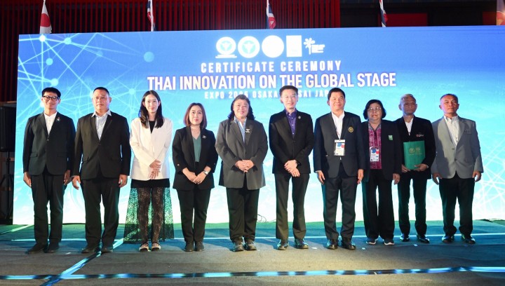 ในโอกาสที่นักวิจัยนักประดิษฐ์ไทย นำผลงานวิจัย นวัตกรรมและผลิตภัณฑ์ ร่วมนำเสนอใน Thailand Pavilion ณ งาน Expo 2025 Osaka Kansai ประเทศญี่ปุ่นเมื่อวันที่ 2 ตุลาคม 2568 ศาสตราจารย์ ดร.ศุภชัย ปทุมนากุล ปลัดกระทรวงการอุดมศึกษา วิทยาศาสตร์ วิจัยและนวัตกรรม(อว.) เป็นประธานในพิธีมอบเกียรติบัตรขอบคุณนักวิจัยนักประดิษฐ์ไทย ที่เข้าร่วมนำเสนอผลงานวิจัย นวัตกรรมและผลิตภัณฑ์ ณ อาคารนิทรรศการไทย (Thailand Pavilion) ในงาน Expo 2025 Osaka Kansai ประเทศญี่ปุ่น โดยผู้เข้าร่วมงานประกอบด้วย ดร.วิภารัตน์ ดีอ่อง ผู้อำนวยการสำนักงานการวิจัยแห่งชาติ, รองศาสตราจารย์ ดร.ชลวิทย์ เจียรจิตต์ อธิการบดีมหาวิทยาลัยศรีนครินทรวิโรฒ, นางสาวศิรินทร์พร เดียวตระกูล รองผู้อำนวยการ วช. ตลอดจนผู้บริหาร ผู้ทรงคุณวุฒิ และคณะนักวิจัยนักประดิษฐ์ที่เข้าร่วมนำเสนอผลงาน