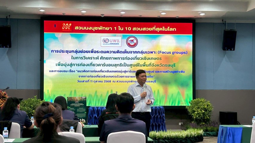 รศ.ดร.พีระศักดิ์ ฉายประสาท สังกัดคณะเกษตรศาสตร์ฯ จัดการอบรมเชิงปฏิบัติการภายใต้โครงการ “การท่องเที่ยวเชิงเกษตรเพื่อมุ่งสู่การท่องเที่ยวคาร์บอนสุทธิเป็นศูนย์ในภาคตะวันออก” เพื่อถ่ายทอดองค์ความรู้และแลกเปลี่ยนแนวทางการพัฒนาการท่องเที่ยวเชิงเกษตรที่เป็นมิตรต่อสิ่งแวดล้อม กิจกรรมครั้งนี้ได้รับทุนสนับสนุนจากหน่วยบริหารและจัดการทุนด้านการเพิ่มความสามารถในการแข่งขันของประเทศ (บพข.) ประจำปีงบประมาณ 2568 โดยมีนักวิจัย นักพัฒนา และผู้ประกอบการท่องเที่ยวจากหลายจังหวัดในภาคตะวันออกเข้าร่วมอย่างคับคั่ง