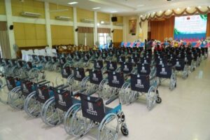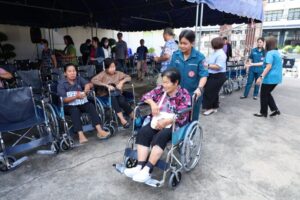 ระหว่างวันที่ 8 – 21 ตุลาคม พ.ศ. 2568 มูลนิธิป่อเต็กตึ๊ง นำโดย นายสุรพงศ์ เสรฐภักดี กรรมการและรองเหรัญญิก พร้อมด้วย นางศิริพร กระจ่างหล้า ผู้จัดการฝ่ายสังคมสงเคราะห์ และนางสาวศุภรัตน์ สมบัติเจริญไทย หัวหน้าแผนกส่งเสริมการศึกษาและอาชีพ นำทีมลงพื้นที่ มอบเข็นวีลแชร์ในโครงการ “ป่อเต็กตึ๊ง สงเคราะห์สังคม” แก่ผู้พิการด้อยโอกาสในพื้นที่จังหวัดบุรีรัมย์ ชัยภูมิ แพร่ และกำแพงเพชร จังหวัดละ 100 คัน พร้อมมอบค่าพาหนะแก่ผู้พิการคนละ 500 บาท รวม 4 จังหวัด คิดเป็นมูลค่า 1,160,000 บาท (หนึ่งล้านหนึ่งแสนหกหมื่นบาทถ้วน) เพื่อบรรเทาความยากลำบากในการดำรงชีวิตและเพื่อให้มีความสามารถในการช่วยเหลือตนเองได้ โดยมี ผู้แทนจากหน่วยงานภาครัฐ เป็นประธานในพิธี พร้อมด้วย สมาคม/มูลนิธิแต่ละจังหวัด เป็นผู้ประสานงานและร่วมในพิธี