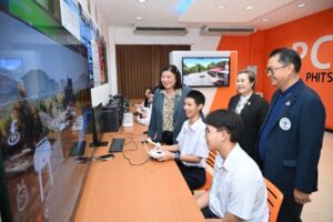 นางสาวจิรวรรณ สุรเสียง รองผู้อำนวยการสำนักงานเขตพื้นที่การศึกษามัธยมศึกษาพิษณุโลก อุตรดิตถ์ กล่าวว่า ในนามของเขตพื้นที่การศึกษามัธยมศึกษาพิษณุโลก อุตรดิตถ์ ขอขอบพระคุณ วช. ที่ให้การสนับสนุนการจัดตั้งศูนย์การเรียนรู้เทคโนโลยีและนวัตกรรมโดรนเพื่อส่งเสริมการท่องเที่ยว ซึ่งเป็นโครงการที่มีคุณค่าอย่างยิ่งต่อการพัฒนาเยาวชนและชุมชนท้องถิ่น โรงเรียนรู้สึกเป็นเกียรติที่ได้รับโอกาสให้เป็นส่วนหนึ่งในการขับเคลื่อนงานวิจัยและนวัตกรรมสู่การปฏิบัติจริง ศูนย์แห่งนี้จะเป็นพื้นที่เรียนรู้สำคัญในการพัฒนาทักษะด้านวิทยาศาสตร์ เทคโนโลยี และนวัตกรรมของนักเรียน รวมทั้งเป็นเวทีสร้างสรรค์ผลงานที่ตอบโจทย์การพัฒนาพื้นที่อย่างยั่งยืน