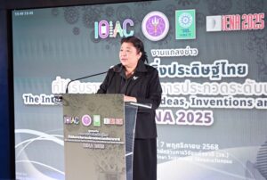 ดร.วิภารัตน์ ดีอ่อง ผู้อำนวยการสำนักงานการวิจัยแห่งชาติ กล่าวว่า เป็นที่น่ายินดีอีกครั้งในความสำเร็จของนักประดิษฐ์ไทยที่คว้ารางวัลจากการเข้าร่วมประกวดในเวที “The International Trade Fair – Ideas, Inventions and New Products” (iENA 2025) ณ เมืองนูเรมเบิร์ก สหพันธ์สาธารณรัฐเยอรมนี ซึ่งจัดขึ้นโดย AFAG Messen und Ausstellungen GmbH ร่วมกับสมาพันธ์นักประดิษฐ์นานาชาติ (IFIA) โดยมีผลงานเข้าร่วมกว่า 500 ผลงาน จากกว่า 20 ประเทศทั่วโลก สำหรับประเทศไทยมีผลงานเข้าร่วมจำนวน 29 ผลงาน จาก 10 หน่วยงานทั้งภาครัฐ รัฐวิสาหกิจ เอกชน และสถาบันการศึกษา ผลงานของนักประดิษฐ์ไทยสามารถคว้ารางวัลในระดับเหรียญทอง เหรียญเงิน และเหรียญทองแดงจากภายในงานและยังได้รับรางวัล Special Prize