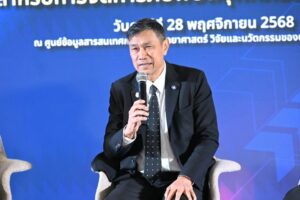 เมื่อวันที่ 28 พฤศจิกายน 2568 สำนักงานการวิจัยแห่งชาติ (วช.) กระทรวงการอุดมศึกษา วิทยาศาสตร์ วิจัยและนวัตกรรม จัดการแถลงข่าว “ระบบบริหารจัดการโลจิสติกส์สินค้าจำเป็นและยาเวชภัณฑ์สำหรับการจัดการภัยพิบัติอุทกภัยในประเทศไทย” โดย ดร.วิภารัตน์ ดีอ่อง ผู้อำนวยการสำนักงานการวิจัยแห่งชาติ เป็นประธานในพิธี ณ ศูนย์ข้อมูลสารสนเทศกลางด้านวิทยาศาสตร์ วิจัยและนวัตกรรมของประเทศ อาคาร วช. 8