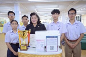 – ผลงานเรื่อง “นาโนฟิลเตอร์สำหรับการดักจับและย่อยสลายไมโครพลาสติกในแหล่งน้ำ ด้วยอนุภาคระดับนาโนจากสาร EPS ของสาหร่ายไกและอนุภาคแม่เหล็กนาโนเหล็กออกไซด์” (รางวัล Grand Prize) โดย นางสาวกีรติกานต์ ไชยโคตร จากโรงเรียนปรินส์รอยแยลส์วิทยาลัย