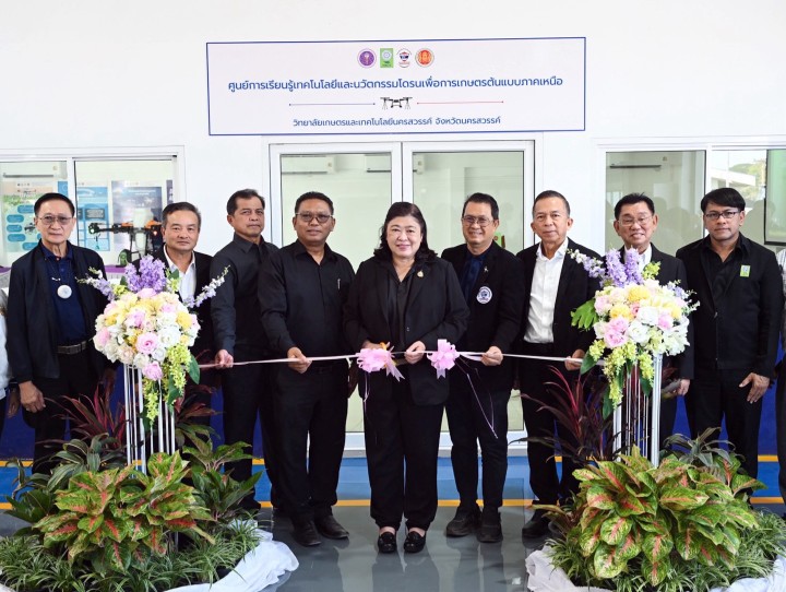 วันที่ 26 ธันวาคม 2568 สำนักงานการวิจัยแห่งชาติ(วช.) กระทรวงการอุดมศึกษา วิทยาศาสตร์ วิจัยและนวัตกรรม ร่วมกับ สมาคมกีฬาเครื่องบินจำลองและวิทยุบังคับ และ วิทยาลัยเกษตรและเทคโนโลยีนครสวรรค์ จัดพิธีเปิดศูนย์การเรียนรู้เทคโนโลยีและนวัตกรรมโดรนด้านการเกษตรต้นแบบภาคเหนือ วิทยาลัยเกษตรและเทคโนโลยีนครสวรรค์ โดยได้รับเกียรติจาก ดร.วิภารัตน์ ดีอ่อง ผู้อำนวยการสำนักงานการวิจัยแห่งชาติเป็นประธานในพิธีเปิด พร้อมด้วย นายสุปรัชญา ประดา รองผู้อำนวยการวิทยาลัยเกษตรและเทคโนโลยีนครสวรรค์ กล่าวต้อนรับ และนายพิศิษฐ์ มิตรเกื้อกูล นายกสมาคมกีฬาเครื่องบินจำลองและวิทยุบังคับ กล่าวรายงานที่มาของโครงการ ณ วิทยาลัยเกษตรและเทคโนโลยีนครสวรรค์ จังหวัดนครสวรรค์