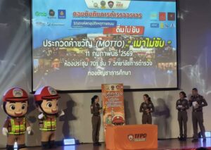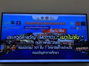 วันพุธที่ 11 กุมภาพันธ์ 2569 เวลา 16.00 น. ณ ห้อง 701 ชั้น 7 อาคาร 8 ชั้น วิทยาลัยการตำรวจ : พล.ต.ท.สมประสงค์ เย็นท้วม ผู้ช่วยผู้บัญชาการตำรวจแห่งชาติ (ผช.ผบ.ตร.) เดินทางมาเป็นประธานมอบรางวัลให้แก่ผู้เข้าแข่งขันกองบังคับการตำรวจจราจร กองบัญชาการตำรวจนครบาล จัดงานประกวด MOTTO โครงการสร้างสรรค์สื่อรณรงค์เมาไม่ขับ โดยมีพล.ต.ต.ดำรงศักดิ์ สว่างงาม ผู้บังคับการตำรวจจราจร ให้การต้อนรับ