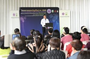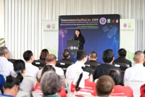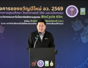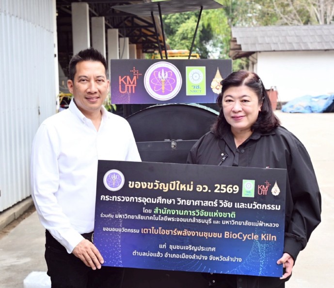 วันที่ 22 กุมภาพันธ์ 2569 สำนักงานการวิจัยแห่งชาติ(วช.) กระทรวงการอุดมศึกษา วิทยาศาสตร์ วิจัยและนวัตกรรม จัด “พิธีส่งมอบนวัตกรรมเตาไบโอชาร์พลังงานชุมชน BioCycle Kiln” ภายใต้โครงการของขวัญปีใหม่ อว. 2569 แก่ ชุมชนเจริญประเทศ ต.บ่อแฮ้ว จ.ลำปาง โดย ดร.วิภารัตน์ ดีอ่อง ผู้อำนวยการสำนักงานการวิจัยแห่งชาติ เป็นประธานในพิธี พร้อมด้วย รองศาสตราจารย์ ดร.อนรรฆ ขันธะชวนะ หัวหน้าโครงการวิจัย กล่าวรายงาน, นายปุณณสิน มณีนันทน์ นายกเทศมนตรีนครลำปาง กล่าวต้อนรับ, นางสาวศิรินทร์พร เดียวตระกูล ผู้อำนวยการสำนักงานการวิจัยแห่งชาติ คณะผู้ทรงคุณวุฒิ วช. ผู้นำท้องถิ่นและประชาชนในพื้นที่ เข้าร่วมพิธี ณ ชุมชนเจริญประเทศ ตำบลบ่อแฮ้ว อ.เมืองลำปาง จ.ลำปาง