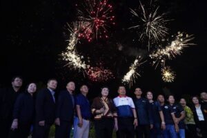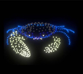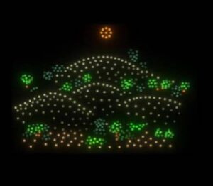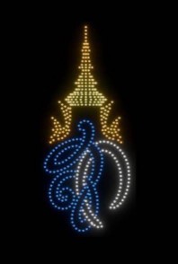 ถัดมาเป็นการแสดงโดรนแปรอักษร ถ่ายทอดสัญลักษณ์สำคัญของจังหวัดระนอง อาทิ